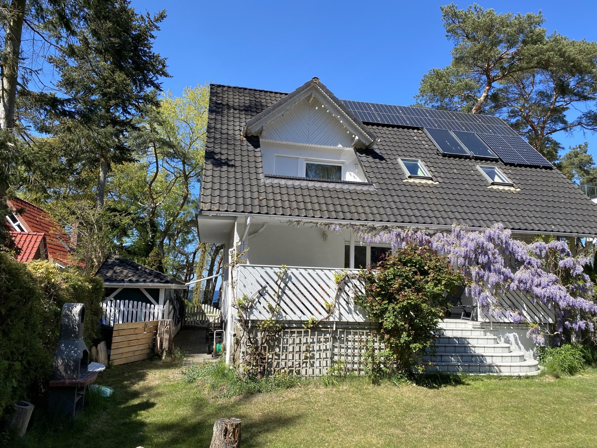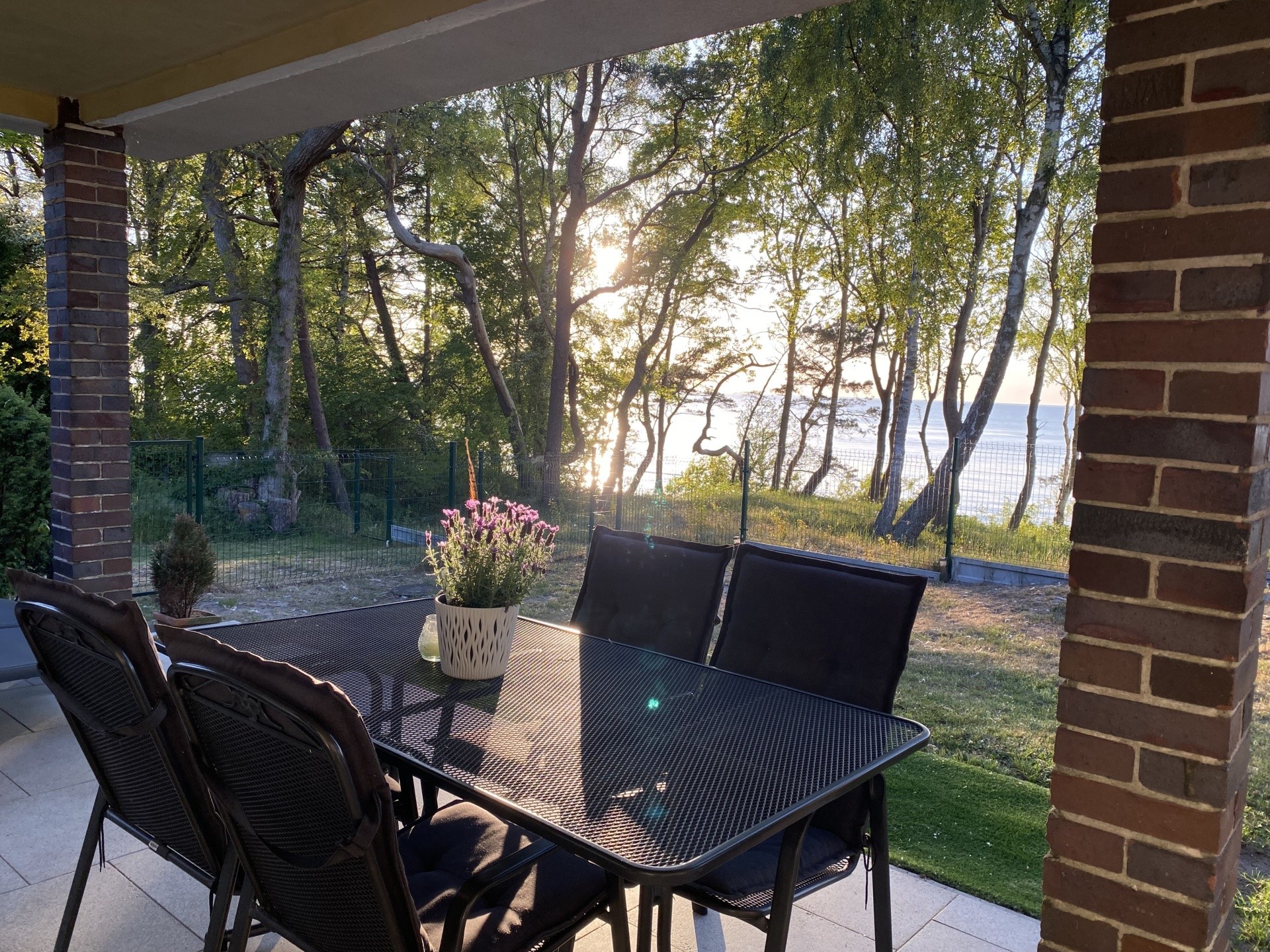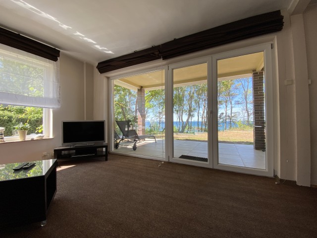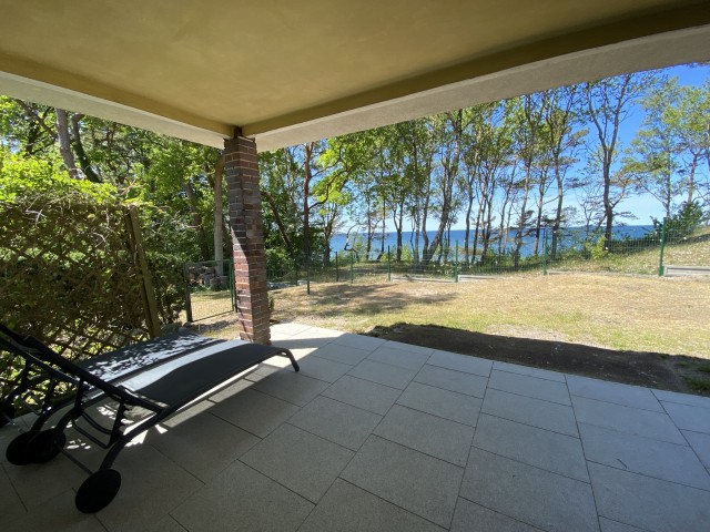 - zadaszony taras z widokiem na morze , meblami ogrodowymi i grillem
