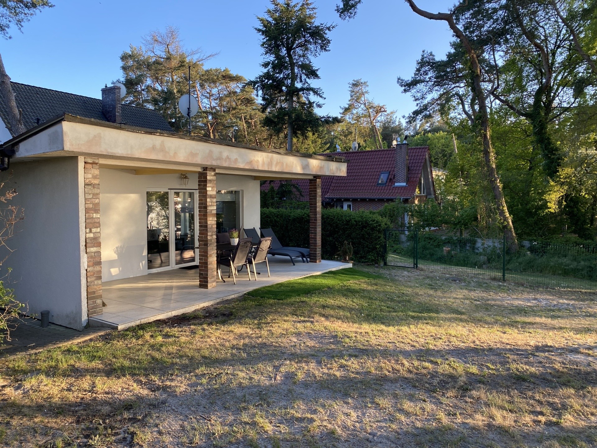 Na wyposażeniu domu jest telewizor z anteną satelitarną (dekoder Polsatu z pakietem familijnym), gryll i meble ogrodowe.