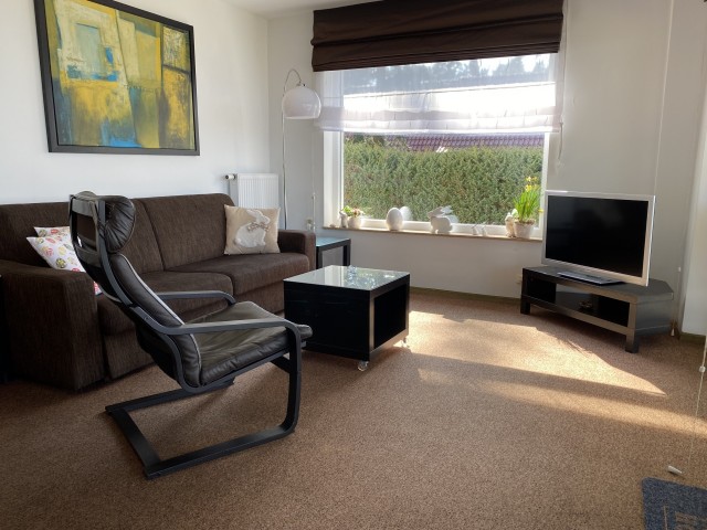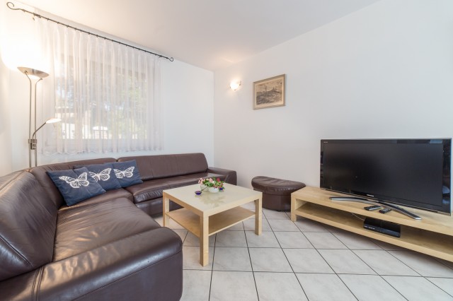 - salon z rozkladaną wersalką i telewizorem ,