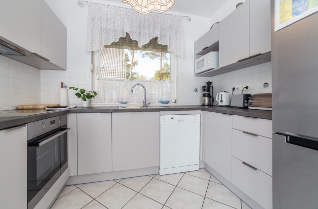 - kuchnia wyposażona w lodówkę, płytę ceramiczną do gotowania , piekarnik, zmywarkę , ekspres do kawy, czajnik do gotowania wody i toaster, wszystkie sztućce, naczynia - talerze, kubki itp,