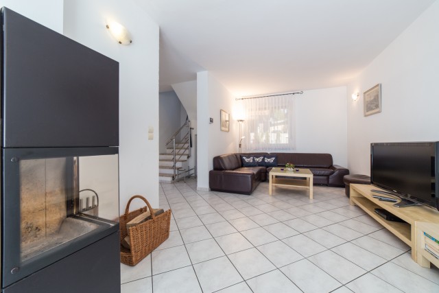 - salon z kominkiem, który w chłodne dni stwarza niepowtarzalny nastrój, telewizor z SAT-TV, odtwarzacz DVD, wieża stereo,