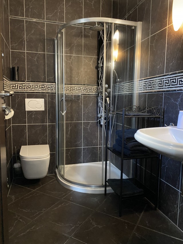 - łazienkę z toaletą i prysznicem,