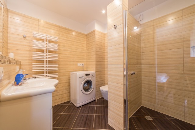 - łazienka z pralką.