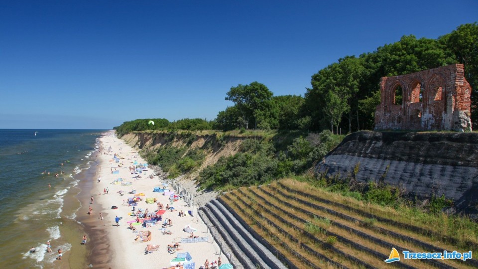 Trzęsacz to niewielka miejscowość letniskowa znajdująca się nieopodal Pobierowa. Właśnie tutaj można podziwiać ruiny gotyckiego kościoła, które uświadamiają odwiedzających, jak wielka jest siła fal morskich. Kościół wybudowano na przełomie XVI i XV wieku, około 2 kilometrów od brzegu morza, pośrodku wsi. Morze stopniowo podmywało klifowe wybrzeże, w wyniku czego w 1868 roku krawędź klifu znajdowała się już metr od budowli. W połowie XIX wieku świątynia musiała zostać zamknięta.