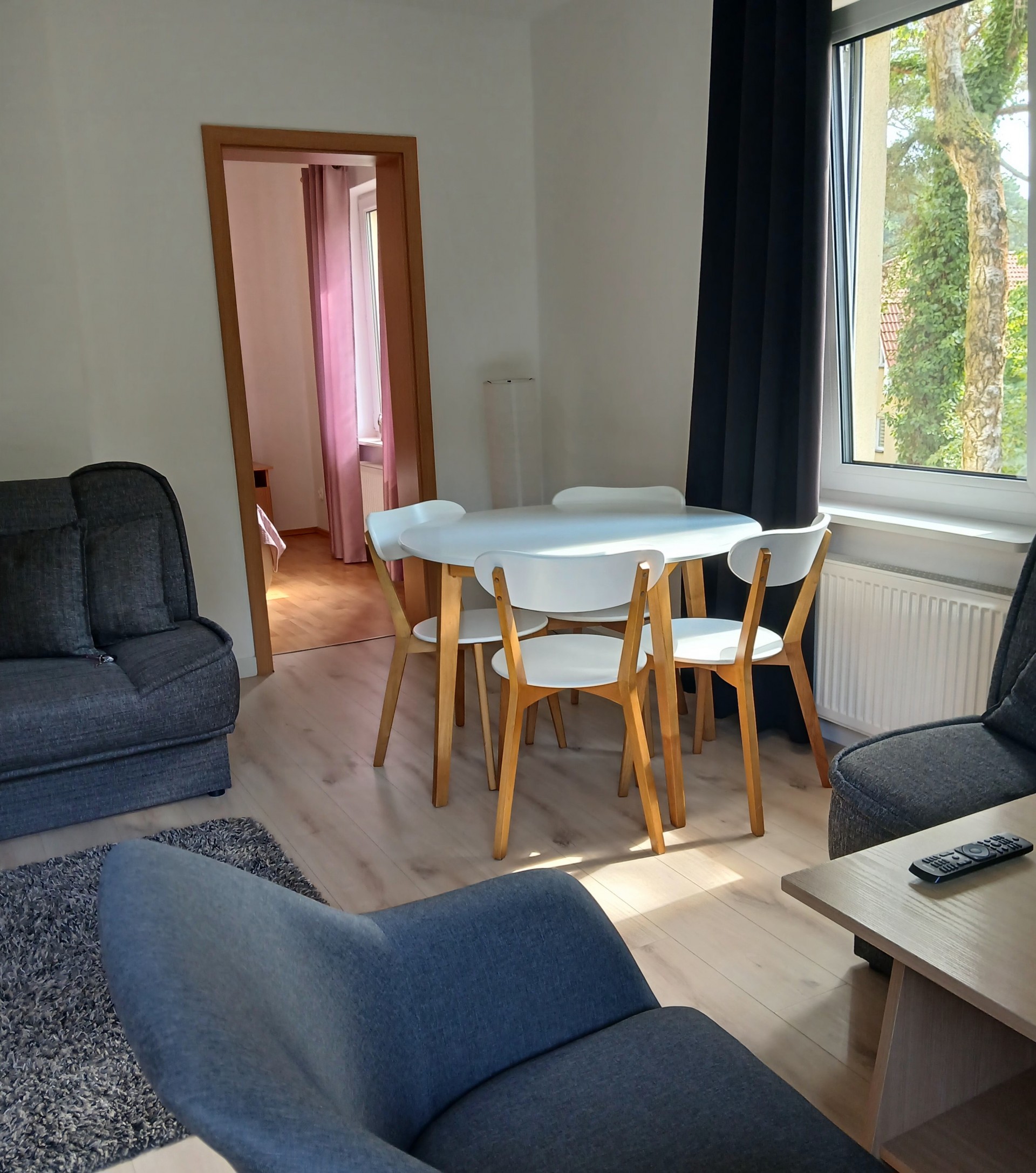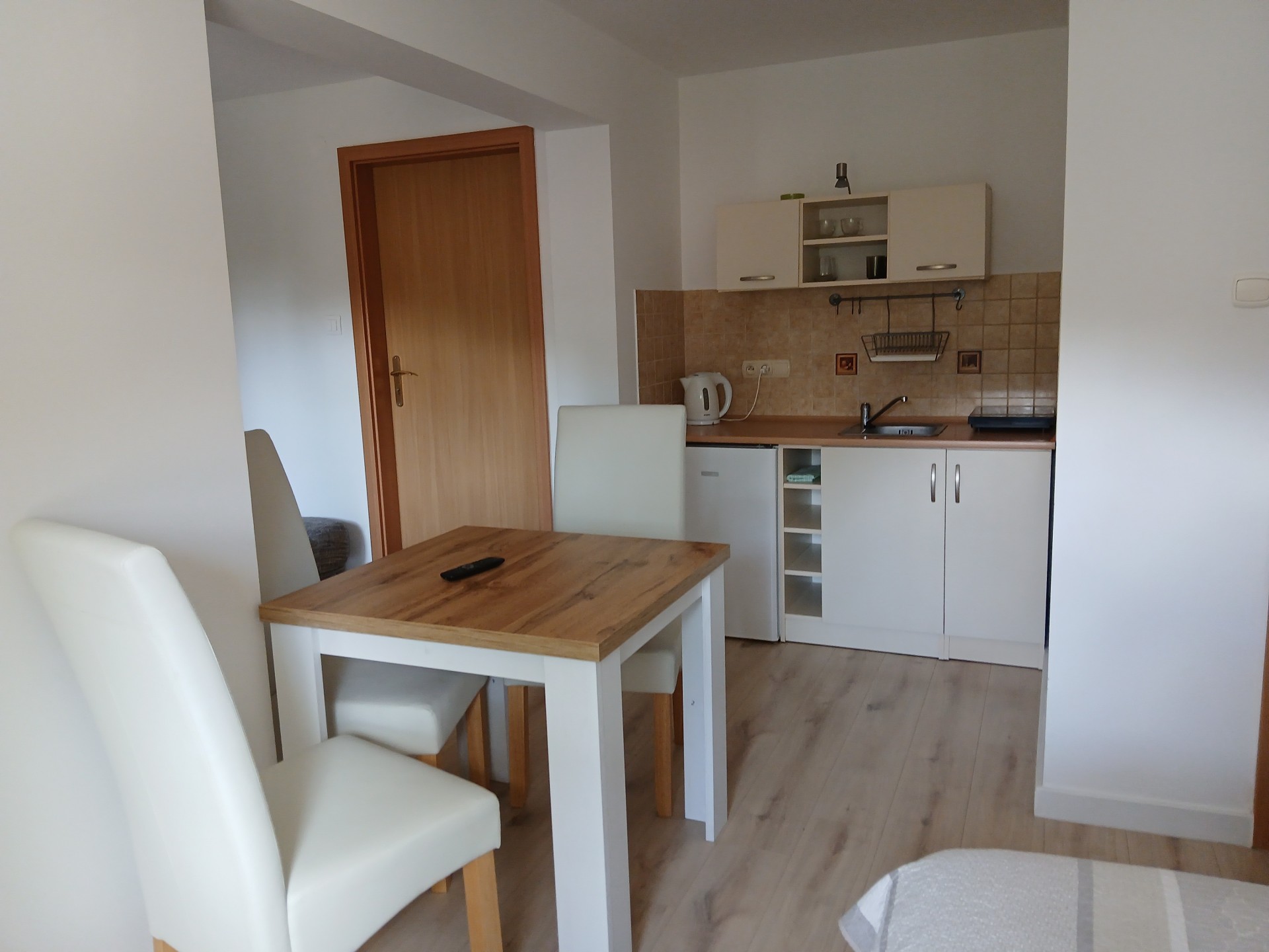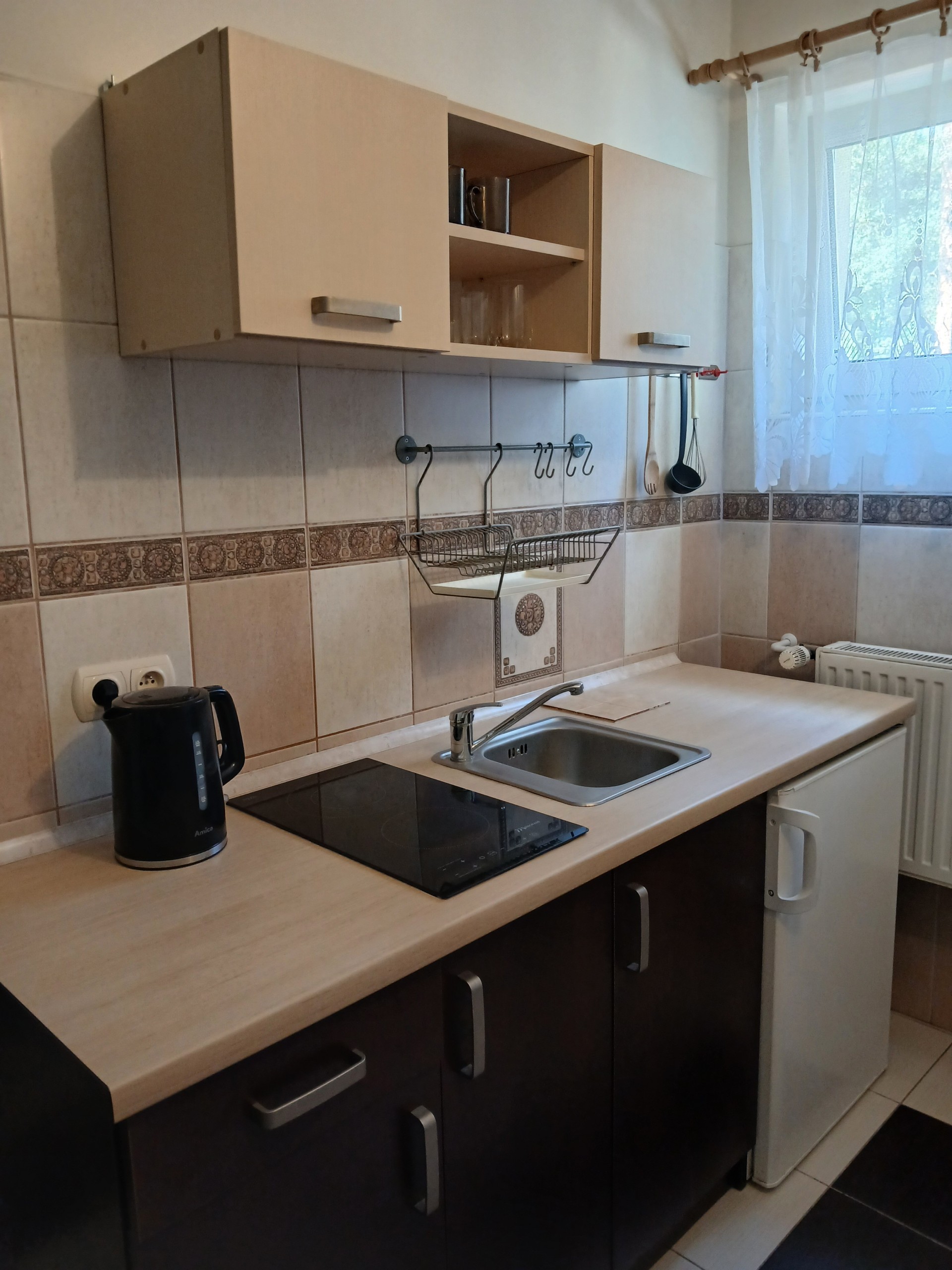 Przygotowaliśmy do Państwa 9 komfortowych pokoi i apartamentów. przygotowanych standardowo do przyjęcia od 2 do 5 osób. Wygodne i ciepło zaaranżowane wnętrza, łazienki, wysoki standard, indywidualne aneksy kuchenne w obrębie każdego pokoju oraz duży ogród zapewnią Państwu komfortowy wypoczynek. Każdy aneks kuchenny wyposażony jest w lodówkę, kuchenkę indukcyjną, czajnik, sztućce i naczynia. Apartamenty dodatkowo wyposażone są w kuchenkę mikrofalową. W każdym pokoju znajduje się leżak, koc i parawan na plażę. Część pokoi także ma swój taras lub balkon. Dla dzieci przygotowaliśmy mini plac zabaw: zjeżdżalnię ze ścianką wspinaczkową, huśtawki, bujak i trampolinę.