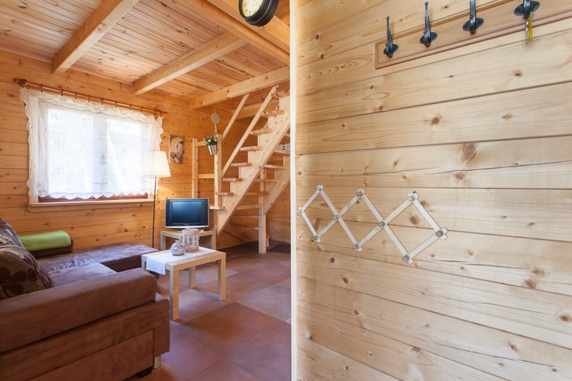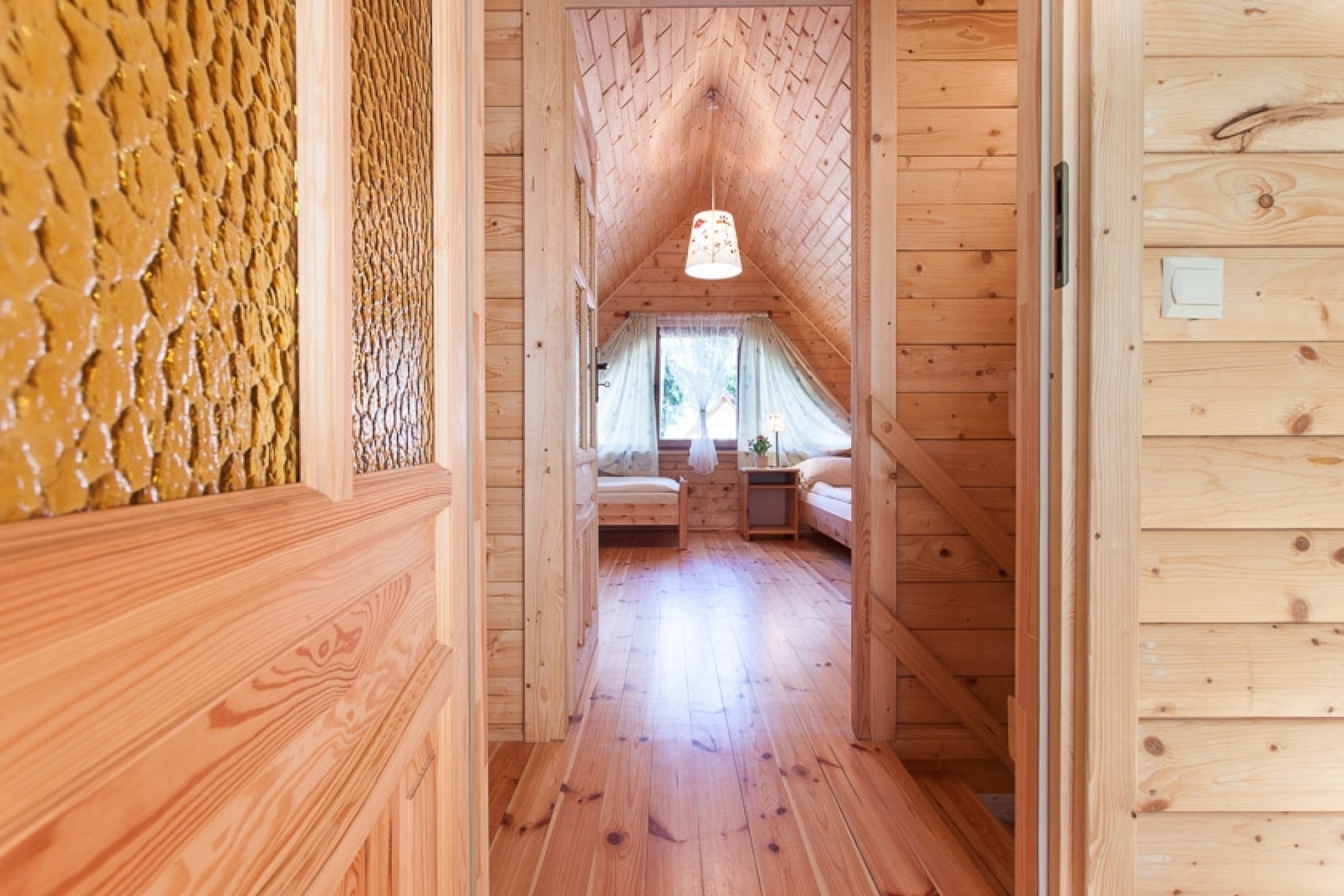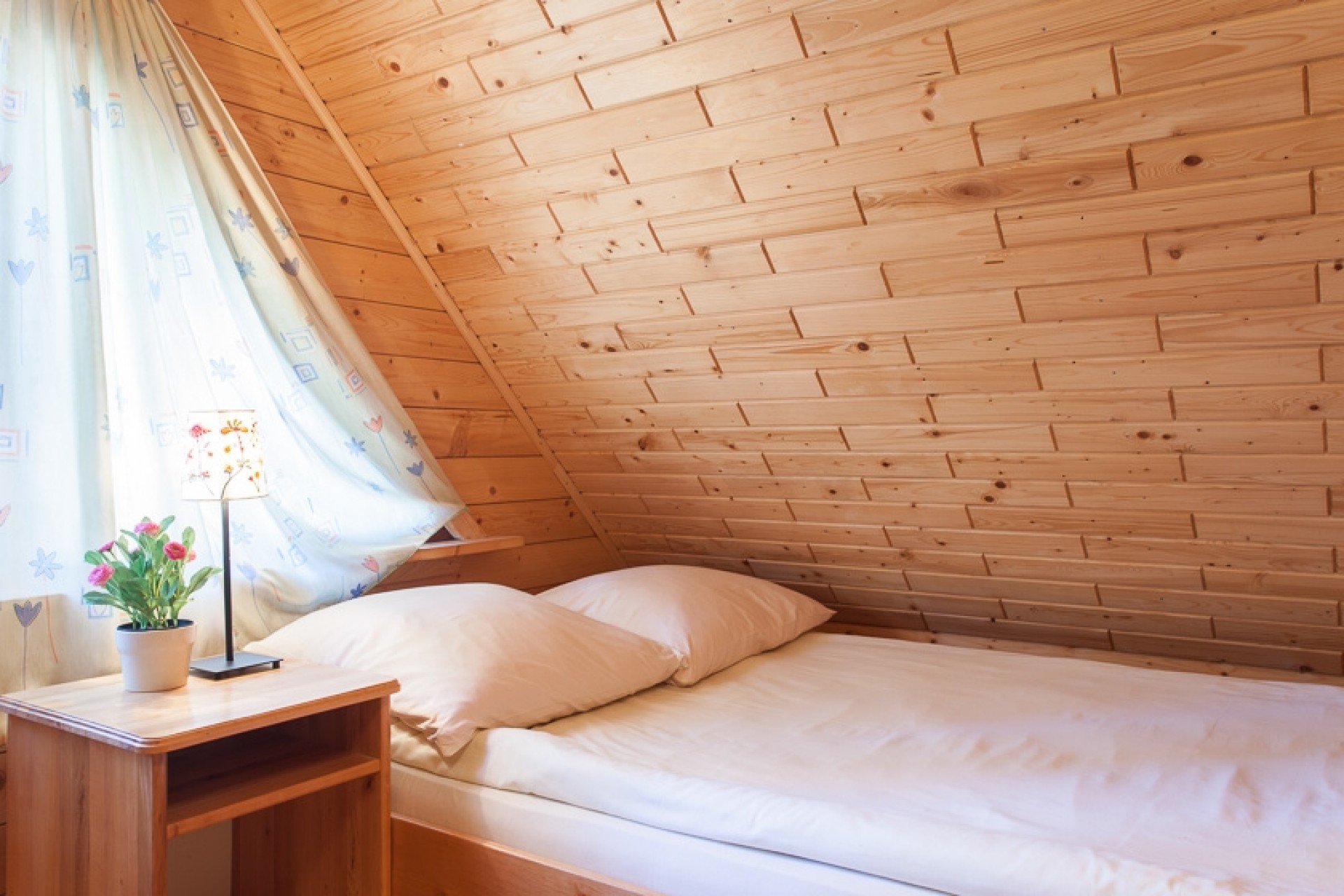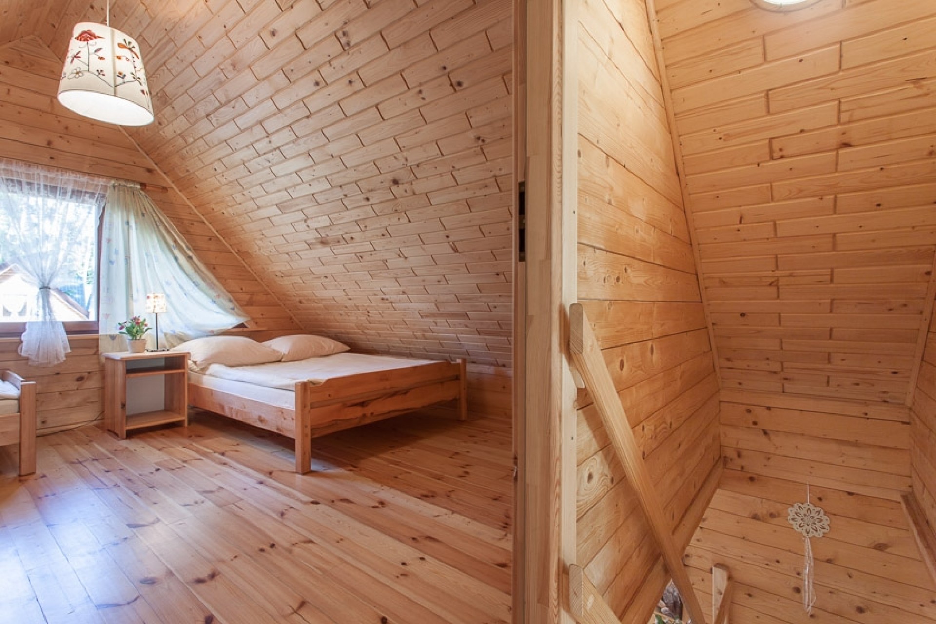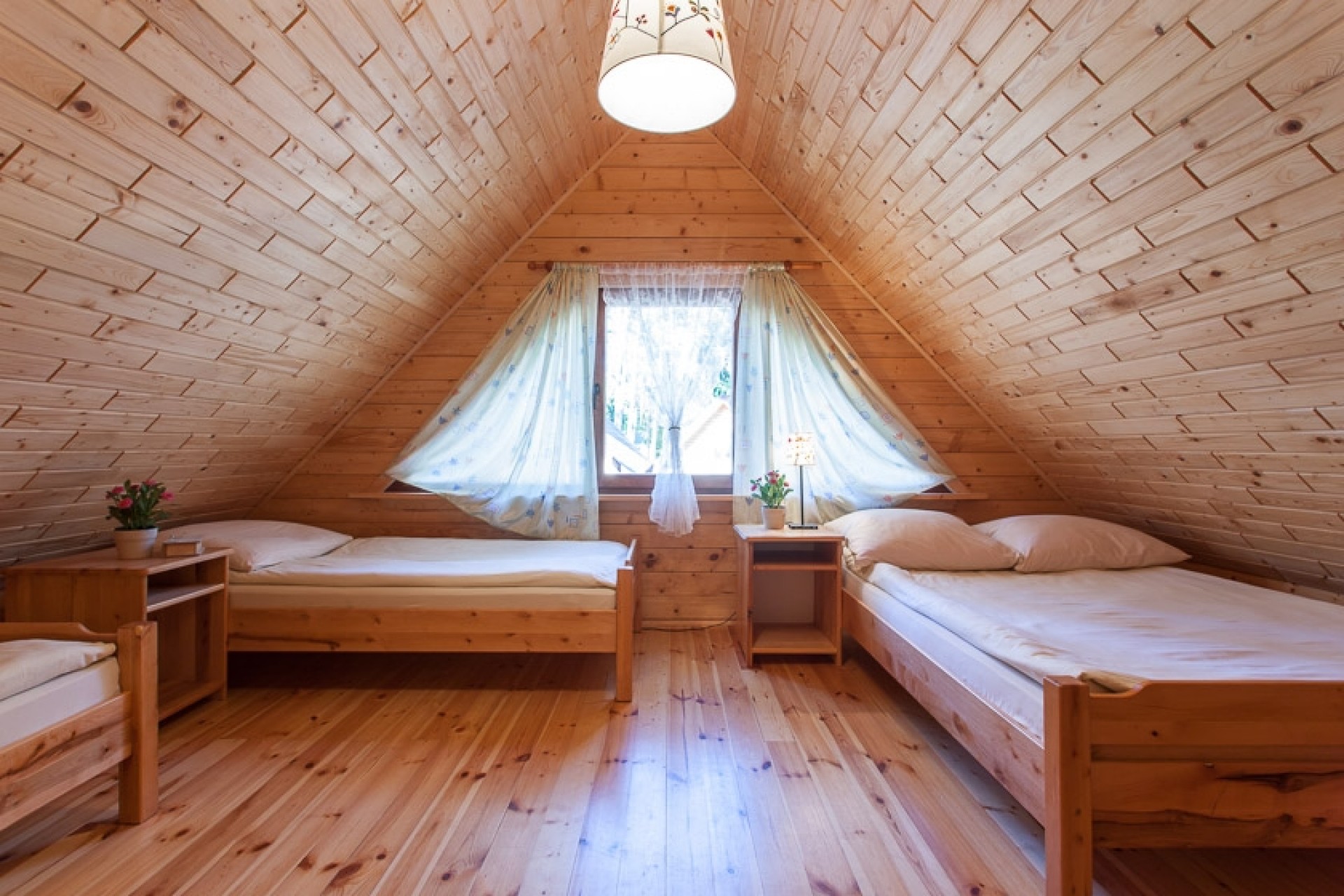 - Dwie osobne, zamykane sypialnie: w jednej łoże małżeńskie i 2 łóżka jednoosobowe, w drugiej łoże małżeńskie, łóżko jednoosobowe oraz łóżeczko drewniane.