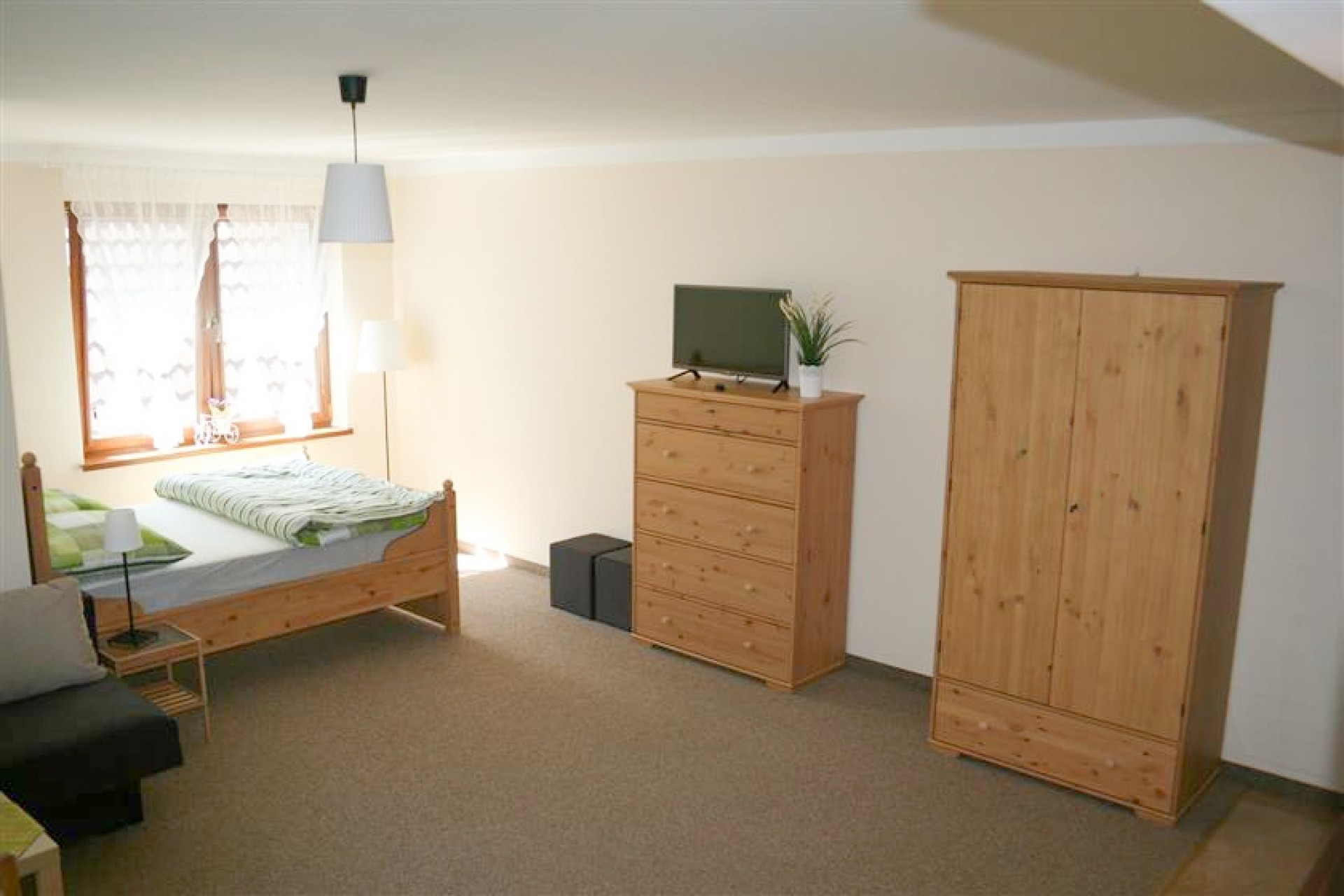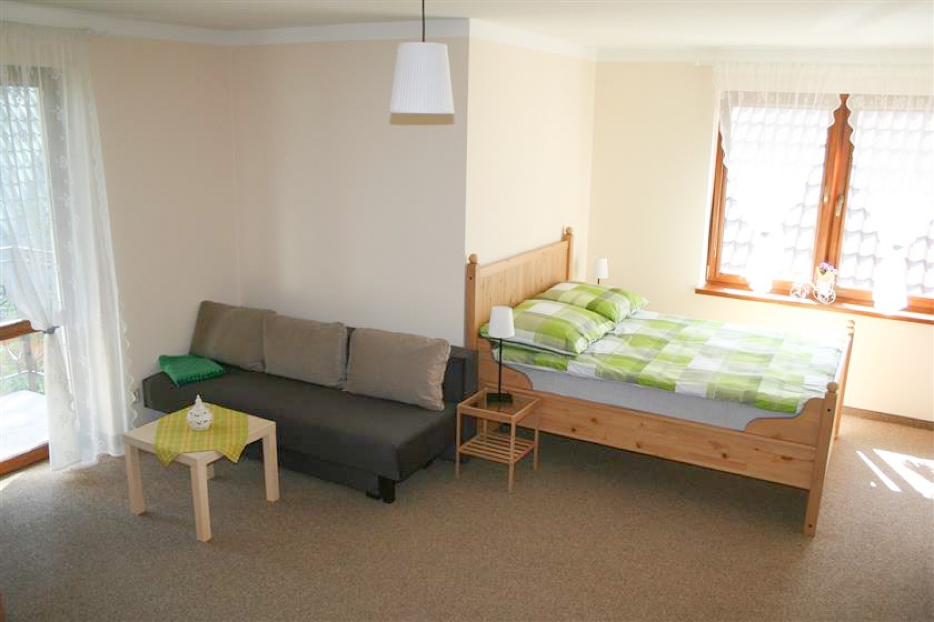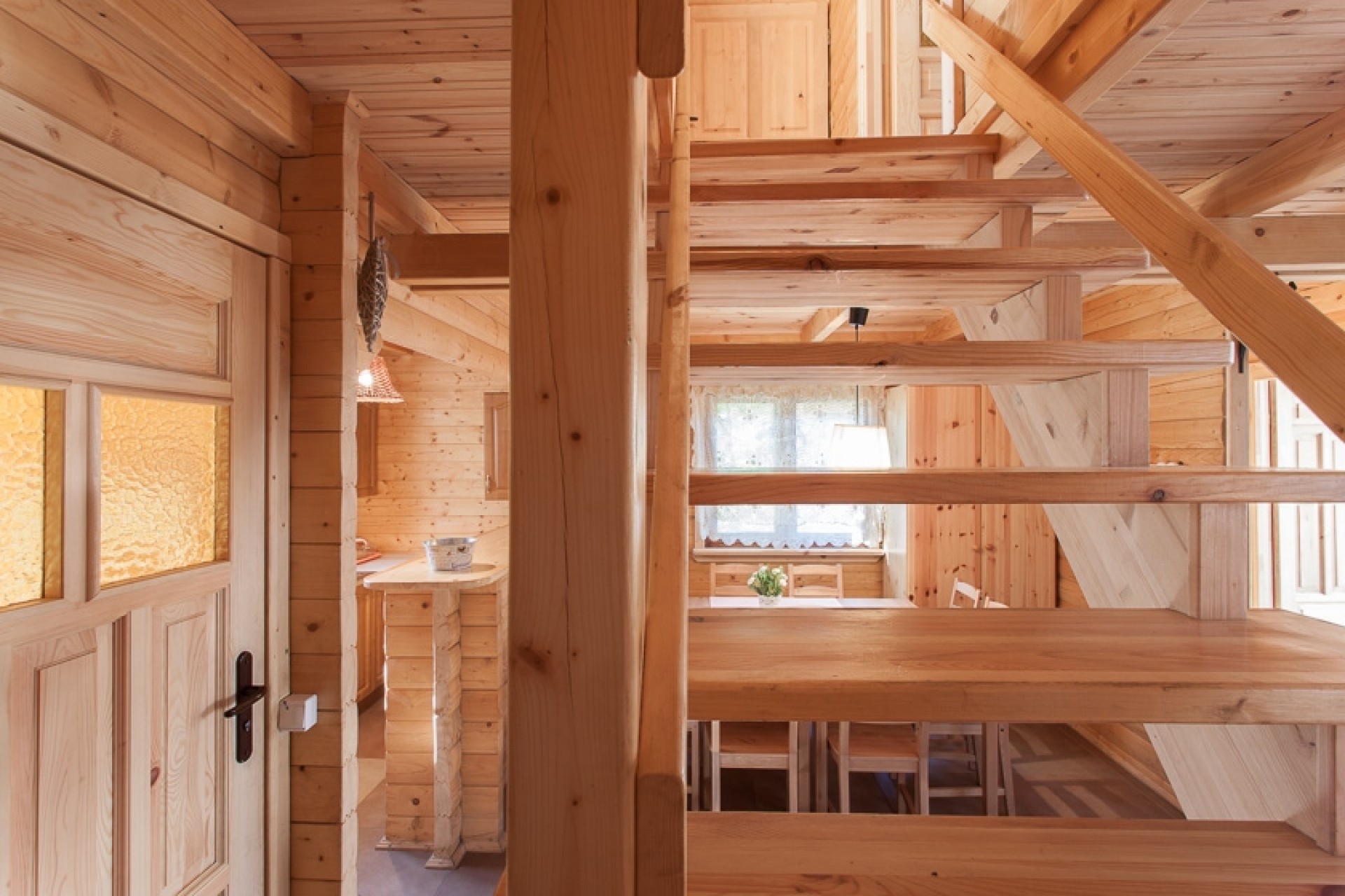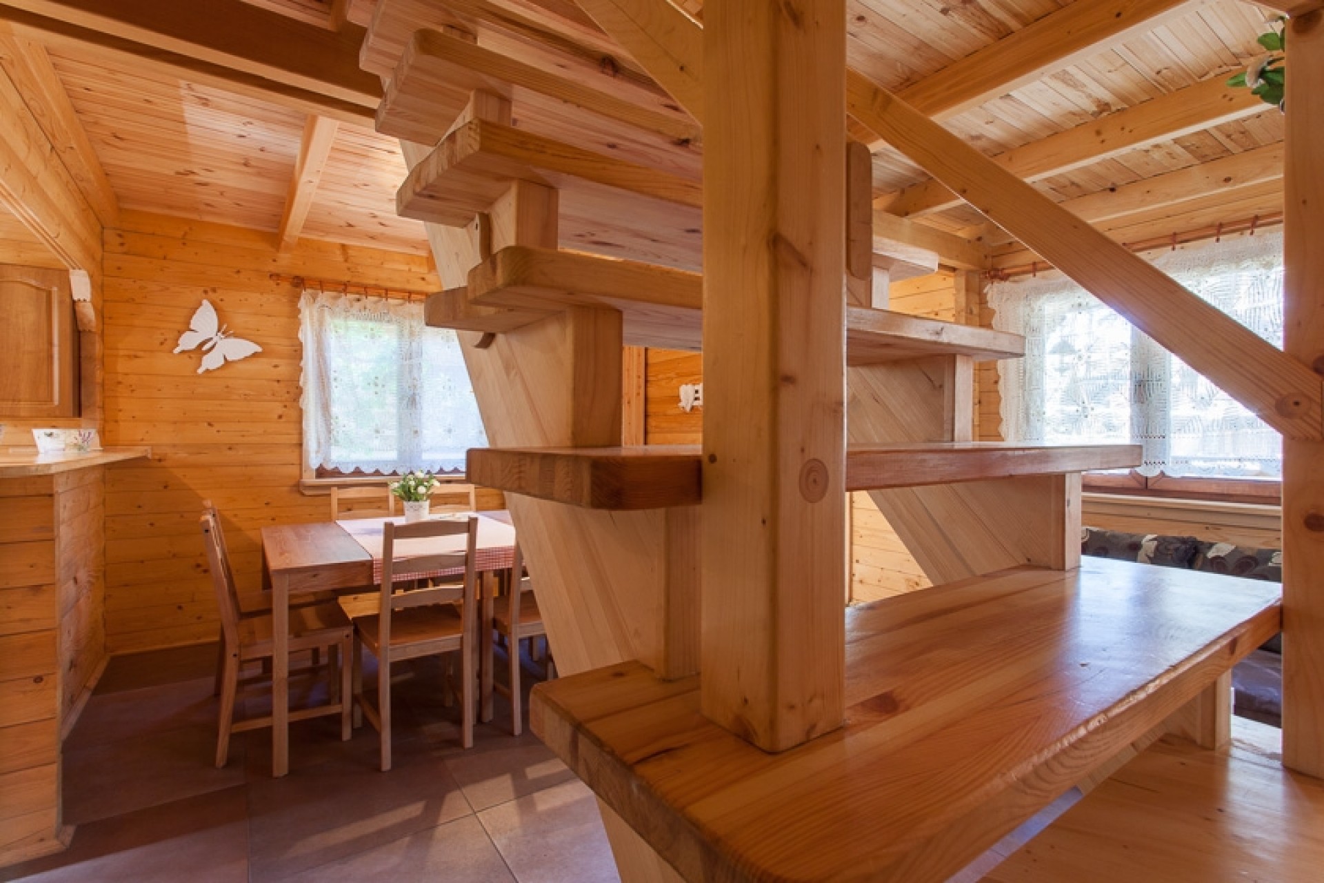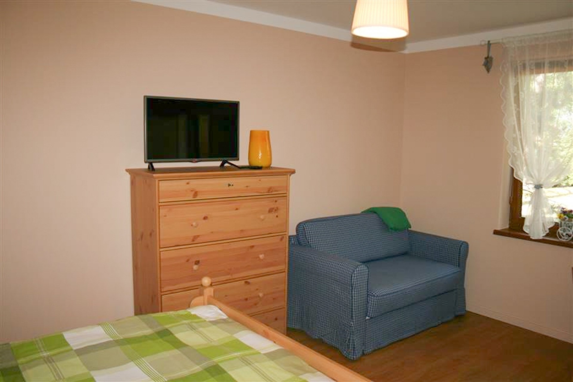 - Dwie osobne, zamykane sypialnie: w jednej łoże małżeńskie i 2 łóżka jednoosobowe, w drugiej łoże małżeńskie, łóżko jednoosobowe oraz łóżeczko drewniane.